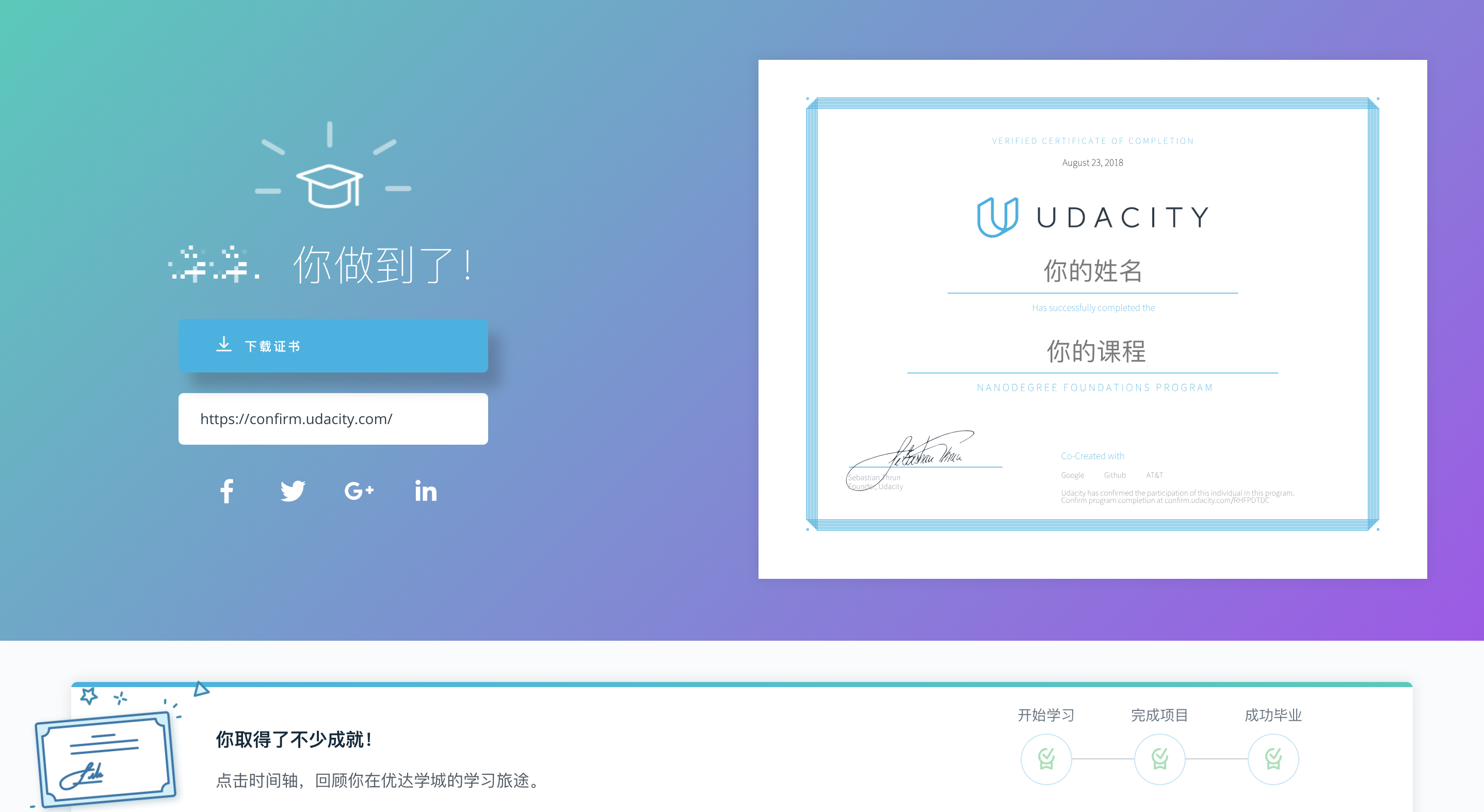 我们希望通过这个小测试,提醒你,当你毕业的时候,你将获得优达学城的证书,所以在这之前你应该在设置页面填写了正确的姓名。