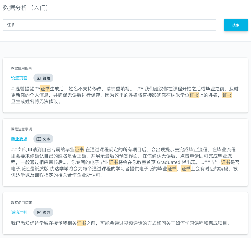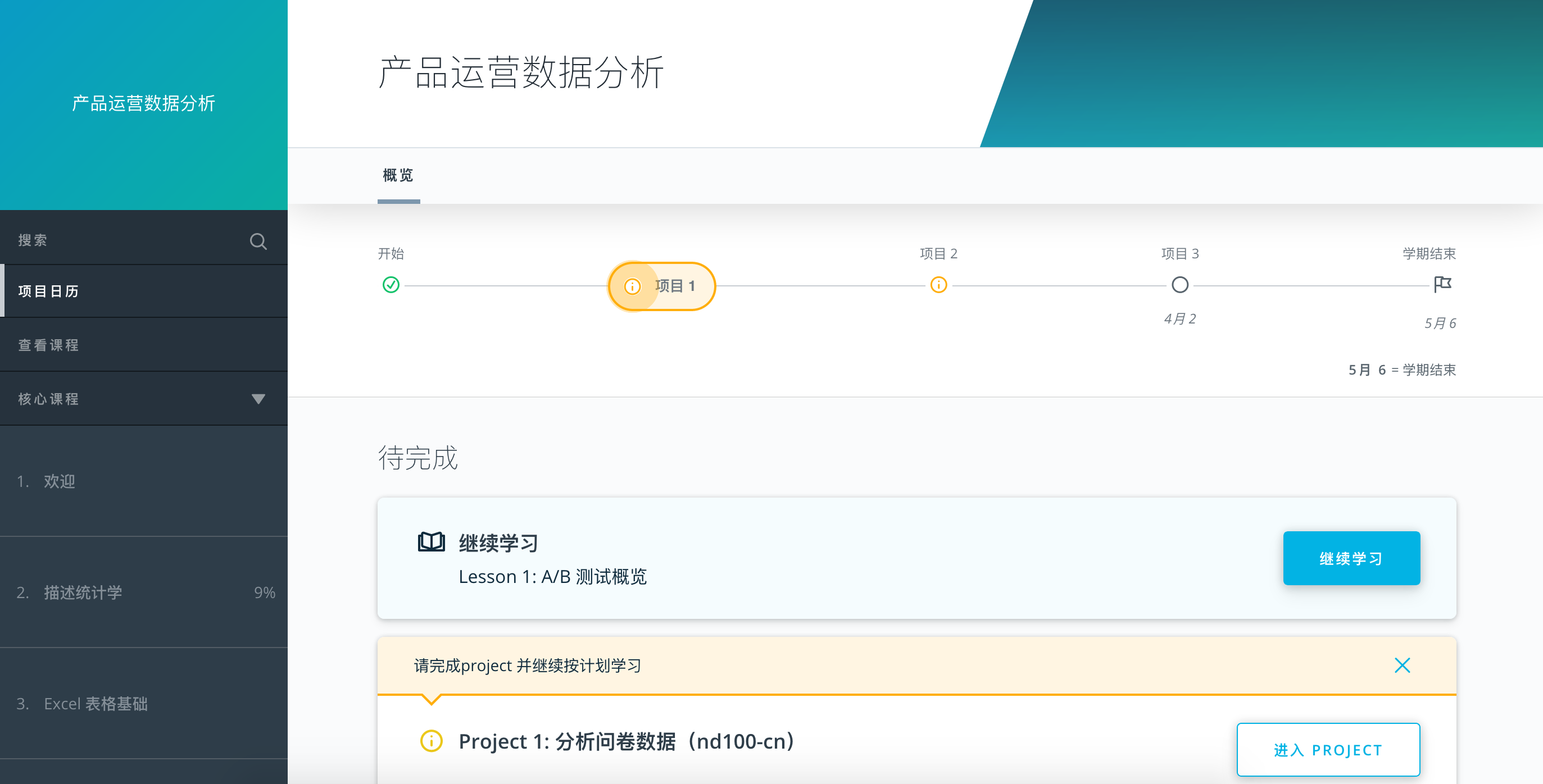 随着教室产品的快速迭代,你也许已经发现了教室的一些小变化,比如在课程页面左侧导航栏的搜索键,已经可以直接进行全课程搜索关键词来找到你需要的内容,另外还增加了项目日历,来帮助你更快更全面地了解学期的总时长,每个项目的截止时间,让你可以在开始课程前就做好时间规划。