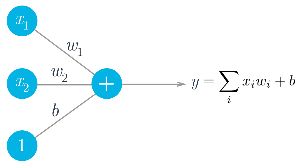 2. 打开下面的 miniflow.py。修改 Linear Node 的子类)以生成一个输出: y = \sum w_i x_i + b