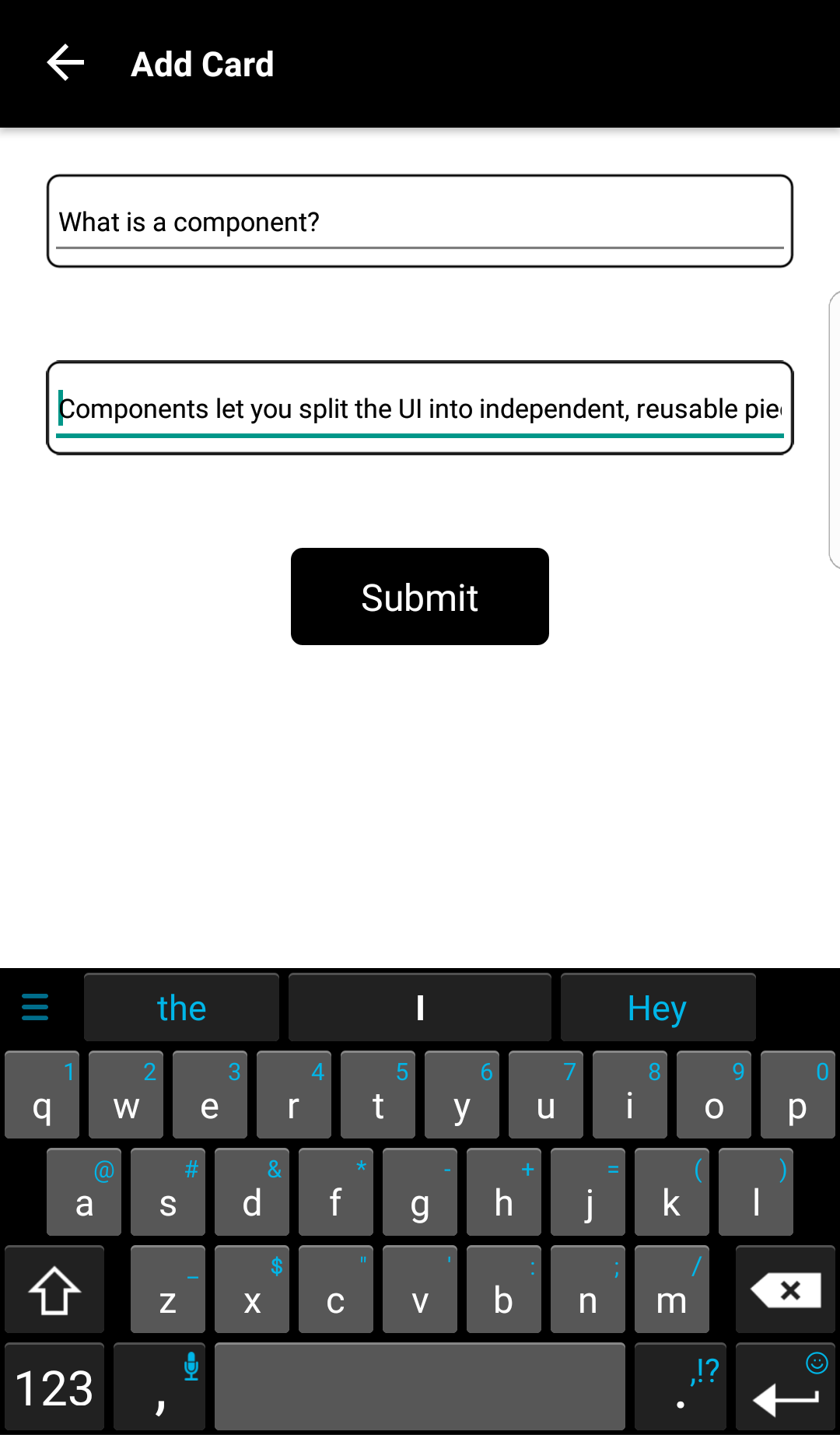 - The back of the card should display the answer.