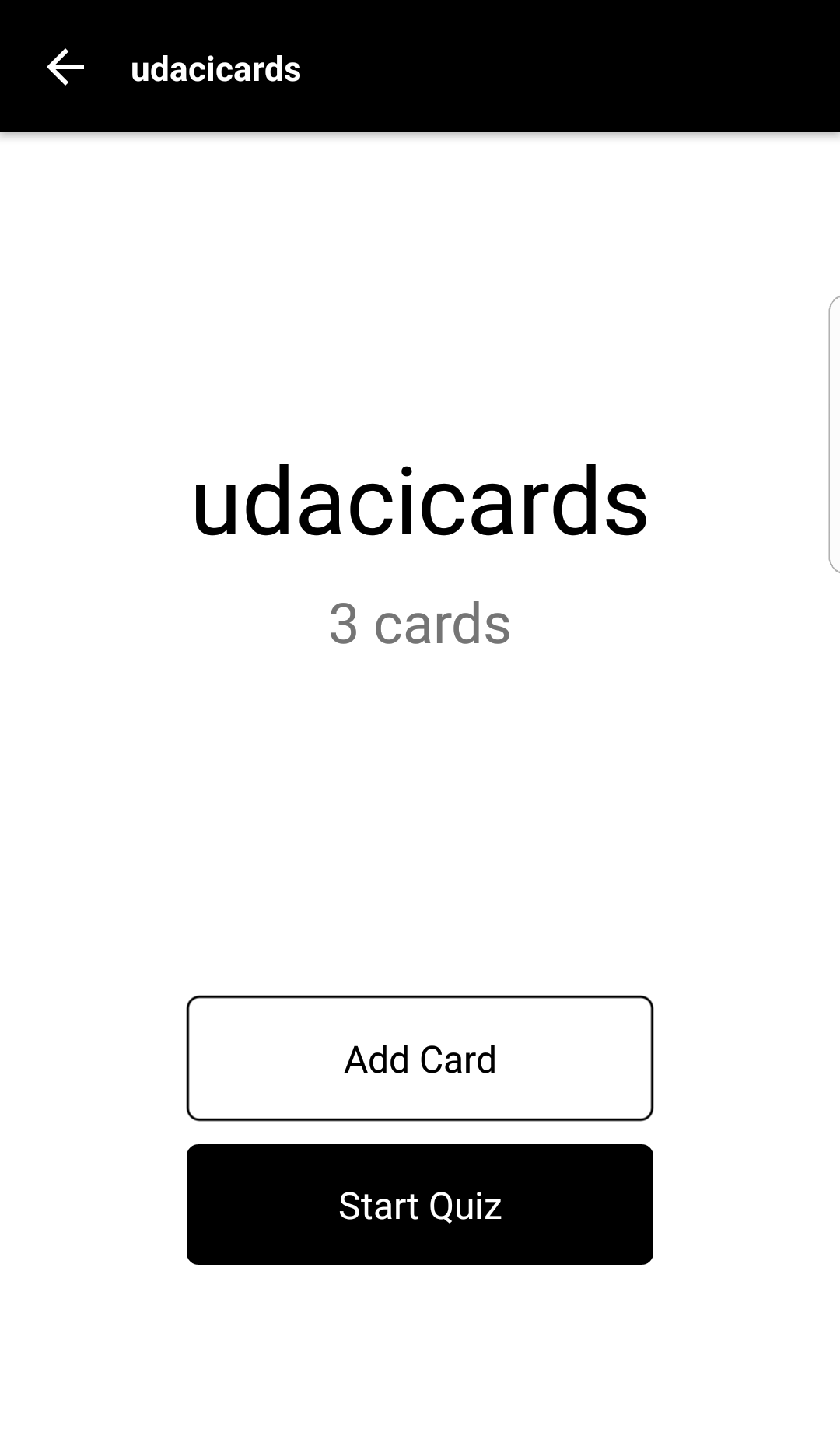 - displays an option to start a quiz on this specific deck